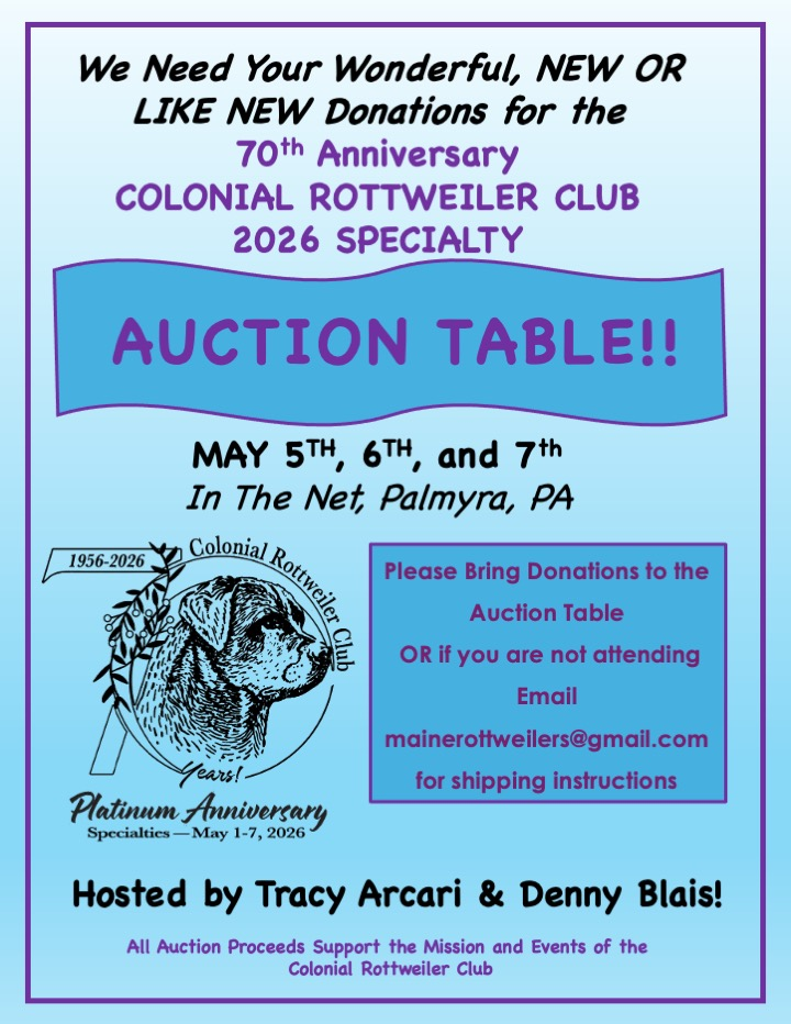 Welcome to the 2026 Colonial Rottweiler Club Specialty Show planning hub. This is your go-to page for mapping out your Specialty week, from travel and lodging to classes, schedules, and daily activities.